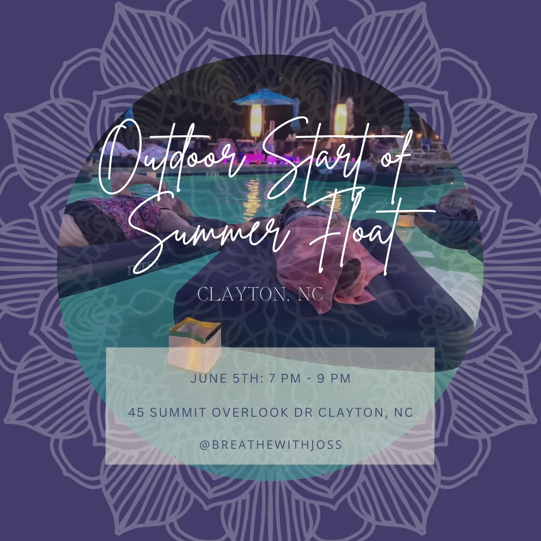Join us for the Triangle area’s best Floating Breathwork and Sound Ceremony. Combining two powerful healing modalities into one event, all while floating in our relaxing pool, this is the perfect setting to connect mind, body, and spirit. Our Floating Breathwork and Sound Ceremony offers a complete Nervous System Reset at a cellular level. Come, dive deep, and emerge refreshed, renewed, and realigned.
